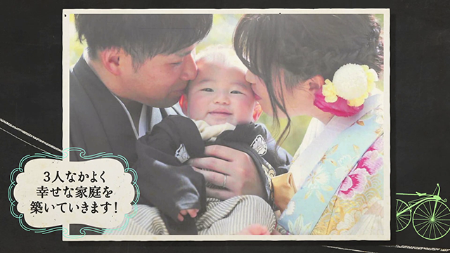 生い立ち紹介シーンでは、お二人の成長と共に周囲を飾るイラストが変化していくため、内容がゲストに伝わりやすくなります。
